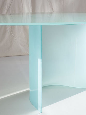 Already in 1932, Pietro Chiesa was experimenting with curving extensive surfaces of glass and realised the first monolithic glass table. It was called Ponte, Italian for ‘bridge’. In the 1970s new glass working techniques were developed by the manufacturer FIAM Italia. It allowed Italian designers to explore the new boundaries of the material’s properties. Following the latest technologies, Angelo Cortesi aimed to emulate Pietro Chiesa by designing an even larger monolithic bridge-like coffee table which he named the Waterfall. Others experimented with table tops separated from their bases in various u mi ndulating forms, such as the s-shape base of this oval dining table. Its curves and glass allows it to blend in easily with any environment, while still drawing attention to itself given its unique design.